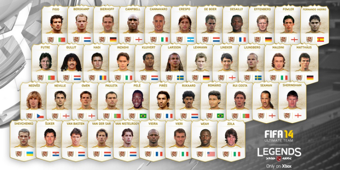 Lo primero, las leyendas únicamente están disponibles en Xbox360 y XboxOne, los usuarios de FIFA14 de PC y sistemas Play Station no van a tener la oportunidad de disfrutar de las leyendas en esta edición del juego pues Microsoft pagó por la exclusividad de las mismas. Así que si no eres un Xboxer no te queda otra que verlos en videos de youtube.